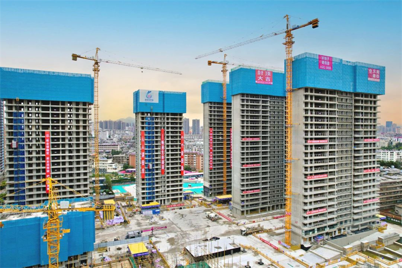▲建材科技外爬架產(chǎn)品在春城華府項目應(yīng)用